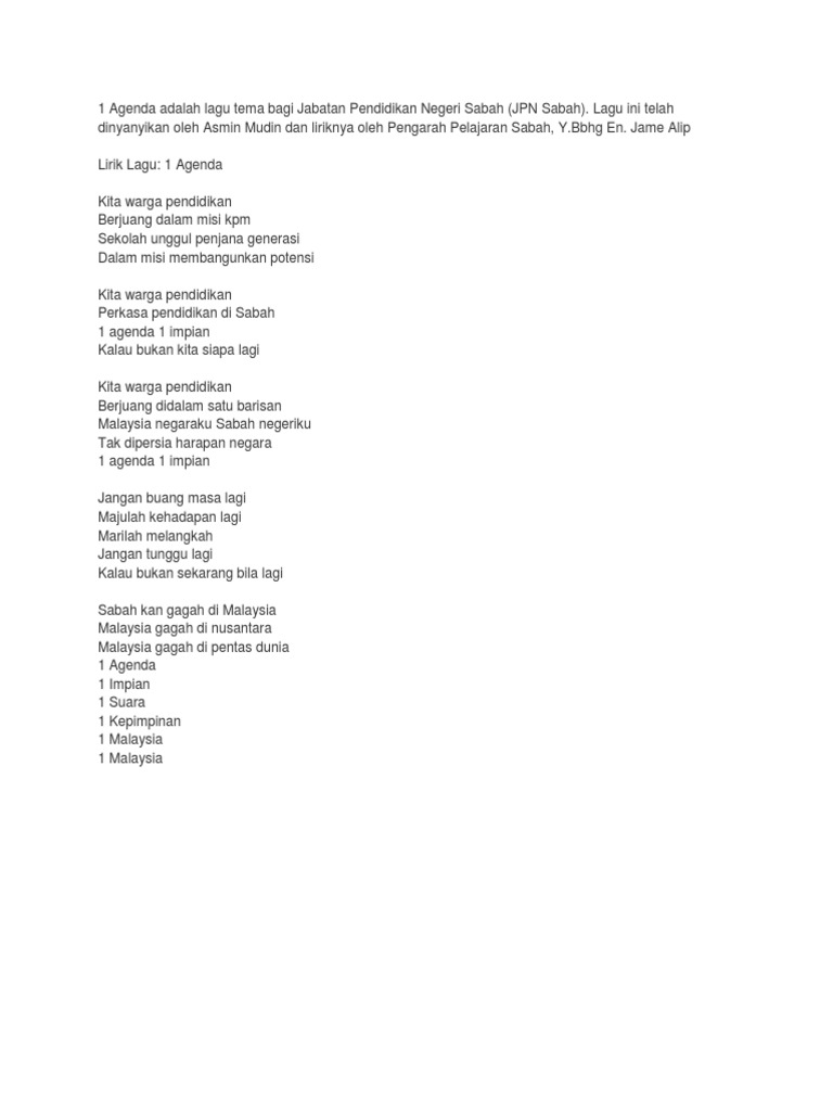 1 Agenda Adalah Lagu Tema Bagi Jabatan Pendidagendakan Negeri Sabah